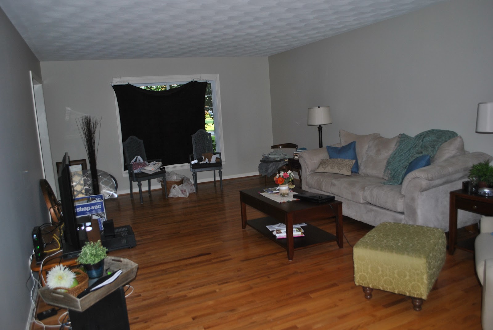 Yesterday I left you in wonderment about our kitchen and family room. Today is the day! I love, love looking back at these pictures. We closed on June 21. It's October 9. Here's a couple months of major change...